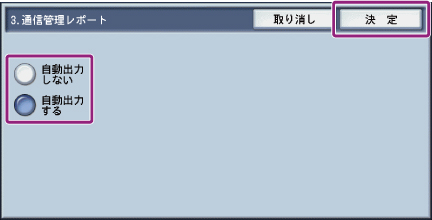 [自動出力しない]または[自動出力する]を選び、[決定]を押します。