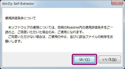 7. [使用許諾条件について]が表示されます。[はい]をクリックします。