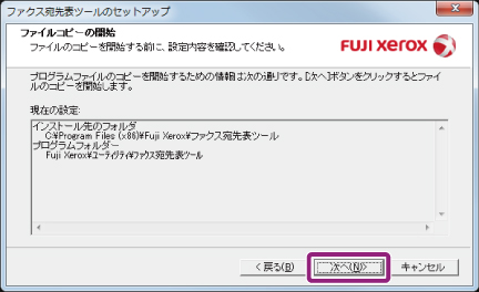 10. インストール先のフォルダーを確認し、[次へ]をクリックします。