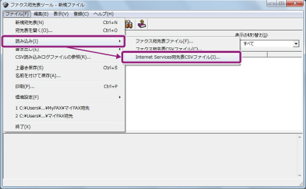 2. [ファイル]メニューから[読み込み]>[Internet Services宛先表CSVファイル]を選びます。