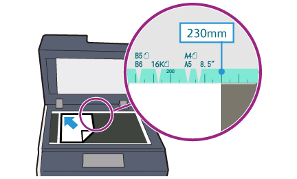 原稿のサイズがわからないときは、原稿ガラスの周りにある目盛りで測ると便利です。