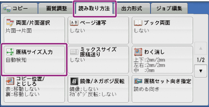 定形サイズ以外の原稿をコピーするには、[原稿サイズ入力]の設定をする必要があります。