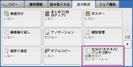 [仕分け/ホチキス/パンチ]を押します。