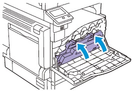 - トナー回収ボトルの裏側にあるグレーのスポンジには触らないでください。トナーで手が汚れるおそれがあります。