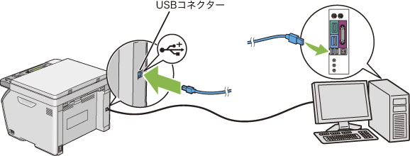 USBケーブルを本体背面のUSBコネクターとパソコンのUSBポートに接続します。