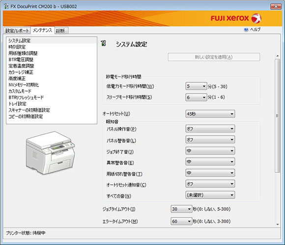 [スタート]>[すべてのプログラム]>[Fuji Xerox]>[Fuji Xerox プリンターソフトウェア]>ご使用のプリンター>[設定管理ツール]をクリックします。