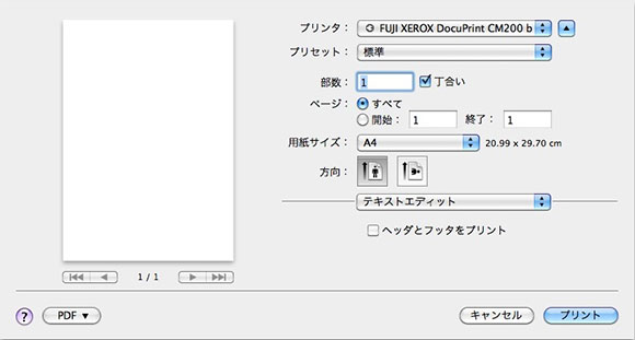 | テキストエディット | ヘッダーとフッターをプリント | ||||||||||||||||