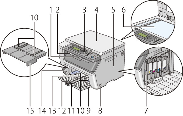 | 9 | フロントカバー | 用紙をセットために開閉します。 |