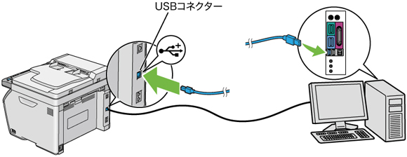 USBケーブルを本体背面のUSBコネクターとパソコンのUSBポートに接続します。