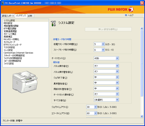 [スタート]>[すべてのプログラム]>[Fuji Xerox]>[Fuji Xerox プリンターソフトウェア]>ご使用のプリンター>[設定管理ツール]をクリックします。