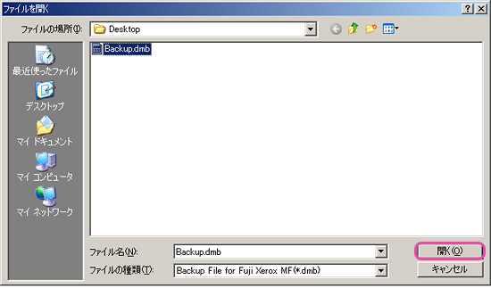 - 「ファイルの種類」をALL Filesにしないとバックアップファイルが表示されない場合があります。