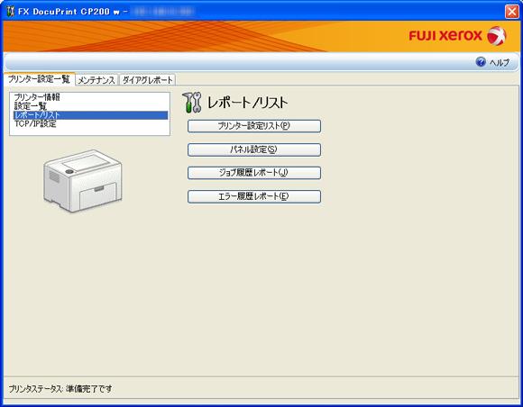 [スタート]>[すべてのプログラム]>[Fuji Xerox]>[FujiXerox プリンタソフトウエア]>[FX DocuPrint CP200 w]>[設定管理ツール]をクリックします。