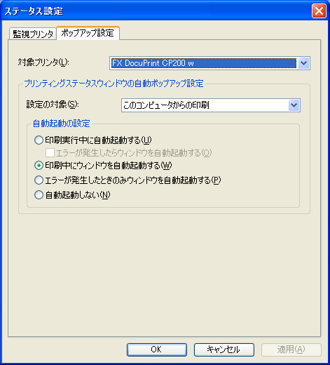 [ステータスモニター]ウィンドウのポップアップ設定を変更する(Microsoft® Windows®)