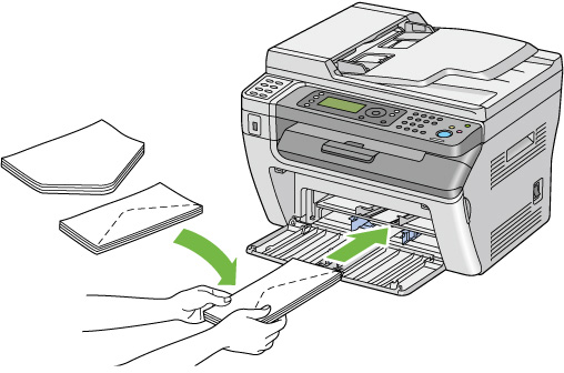- 用紙トレイ(MPF)に封筒#10、封筒DL、封筒モナーク、封筒洋形2/3/4/6号、封筒洋長形3号をセットする場合