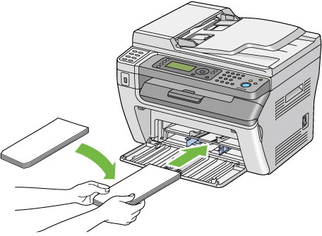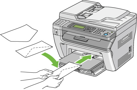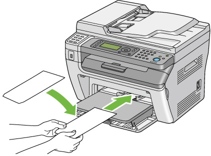 - 封筒は最後まで完全に挿入してください。最後まで完全に挿入していない場合、用紙トレイ(MPF)にセットされている用紙が給紙されます。