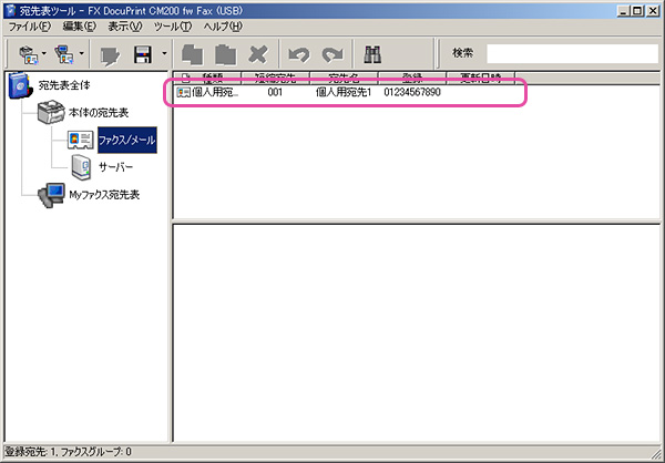 (例:Windows® XP、FX DocuPrint M200 fw) - 『宛先表ツール』の起動時にプリンターと通信を行いプリンターに登録してあります宛先表が表示されます。