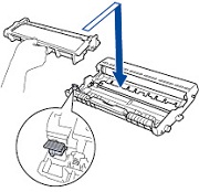 ▼のマークが付いた緑色のつまみを2 ~ 3回往復させ、ドラムカートリッジ内部のコロナワイヤーを清掃する