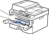- 新しいトナーカートリッジの保護カバーを取り外した後、トナーカートリッジをドラムカートリッジに取り付けてください。