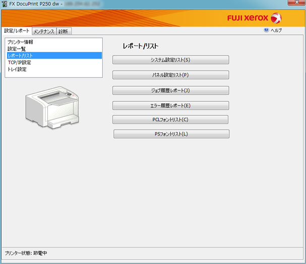 - [スタート]>[すべてのプログラム]>[Fuji Xerox]>[FujiXerox プリンタソフトウエア]>[FX DocuPrint P250 dw]>[設定管理ツール]をクリックします。