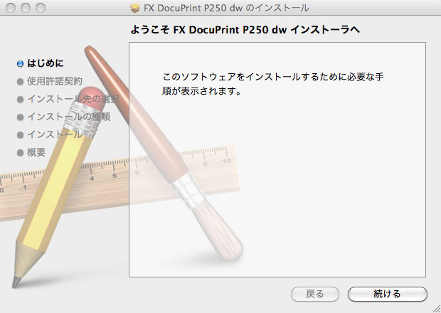 - インストールプログラムの最初の画面が表示されたら[続ける]をクリックします。