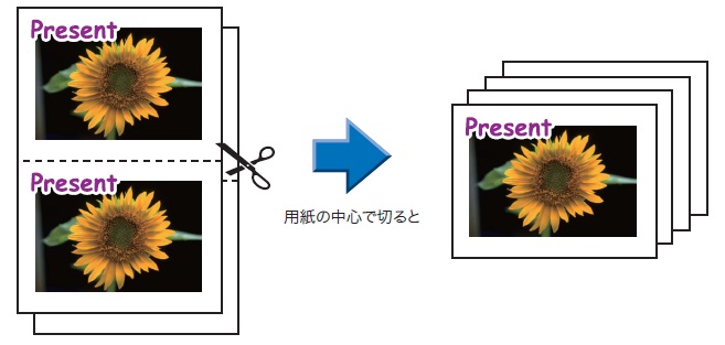 プリント後に、用紙を断裁すると、1枚の用紙から複数枚の印刷物を作成できます。