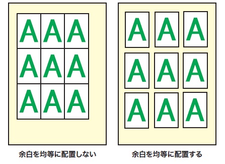 チェックマークを付けると、出力用紙の印字可能領域と、リピートイメージサイズからできるリピートイメージ間の余白が均等になるように、リピートイメージが配置されてプリントされます。