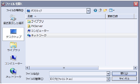 読み込むICCプロファイルを選択し、[開く]をクリックします。