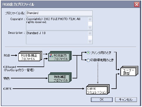 そのため、RGB 色補正プロファイルで、[AdobeRGB(1998)]を選択し、RGB 出力プロファイルで「AdobeRGB(1998)」を想定していないプロファイルを選択した場合には、意図したプリント結果にならないことがあります。 -