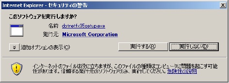 動作中のアプリケーションをすべて終了し、ダウンロードした「dotnetfx35setup.exe」をダブルクリックします。