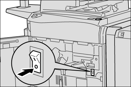 - 操作パネル上の<節電>ボタンだけが点滅を続けることがあります。本機内の温度に応じて、約30から60分間の本機内の冷却を行ったあとに、<節電>ボタンが消灯します。<節電>ボタンが消灯するまでは、主電源を切らないでください。