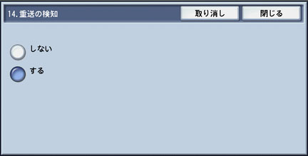 [14. 重送の検知]を選択して、[確認/変更]ボタンを押します。