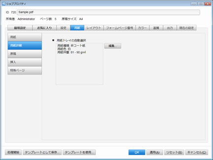 参照項目の詳細については、GX Print Serverユーザーズガイド - ジョブプロパティ編の「用紙」を参照してください。