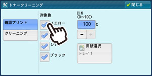 清掃するトナーにチェックマークを付け、CIN(トナー濃度)を入力します。
