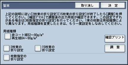 2枚束と15枚束の自動調整で合わない枚数がある場合は、[枚数指定の折り設定]で設定してください。