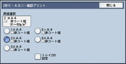 [Z折り- A3]、[Z折り- B4]、[Z折り- 11x17″]または[Z折り- 八開]を選択して、[確認/変更]を押します。