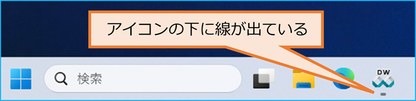 タスクバーにピン留めしてご利用の際は、以下の画像のようにアイコンの下に線が入っているかご確認ください。