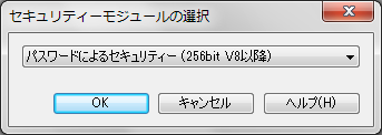 - [セキュリティーモジュールの選択]ダイアログボックスから、[パスワードによるセキュリティー(256bit V8以降、128bit V5以降、または56bit V4以降)]のいずれかを選択し、<OK>をクリックします(DocuWorks 9 の場合、[パスワードによるセキュリティー(256bit V8以降)]を推奨します)。