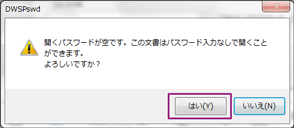 - [DWSPswd]ダイアログボックスが表示されますが、そのまま<はい>をクリックします。