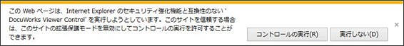 Internet Explorer® 11で、下記のように[拡張保護モード]を有効に設定して、DocuWorks文書を開こうとすると、ダイアログが表示されます。