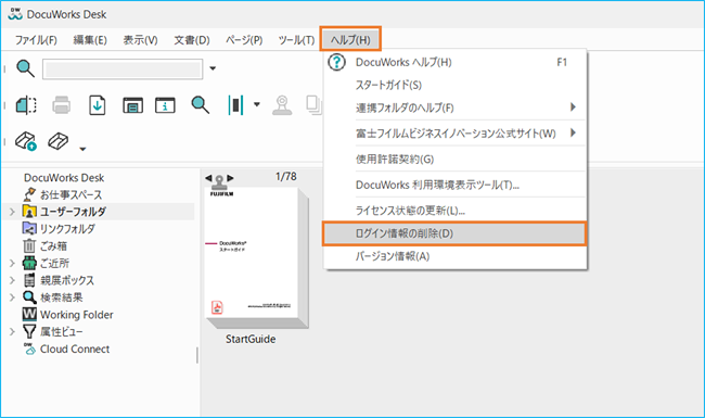 - DocuWorks Deskの上部にある、「ヘルプ」メニューをクリック