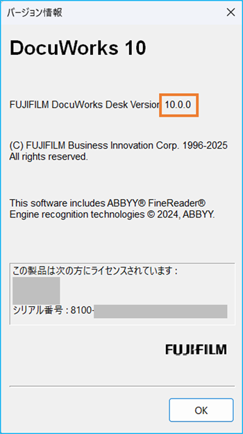 【参考】DocuWorksの詳細バージョンを簡単に確認する方法