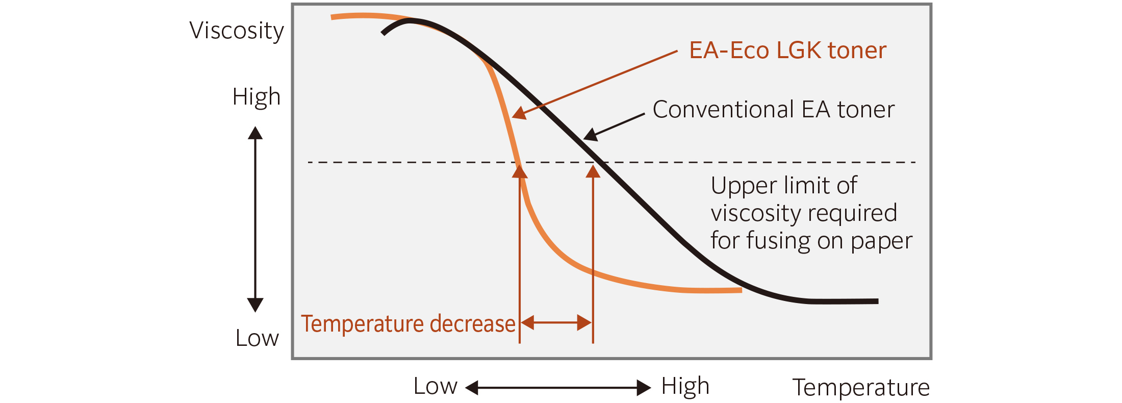 Reliable fusing on paper transported in high-speed is now possible with EA-Eco LGK*2 toner that allows fusing at lower temperature than existing models and a roll type fusing unit providing constant heat supply.