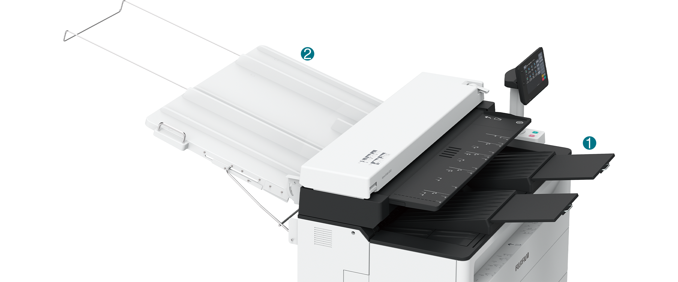- A tray for storing originals outputted to the rear of the device in flat condition.
