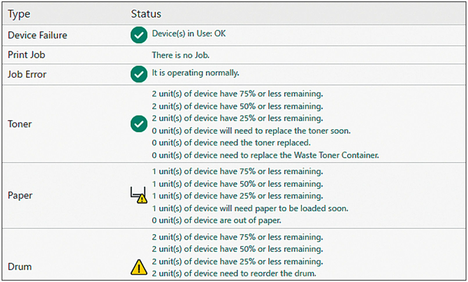Web-based administrator’s UI provides easy-to-understand screens with abundant information on the dashboard. The UI facilitates administration by providing centralized management of the device consumables status such as toner, drums, and paper.