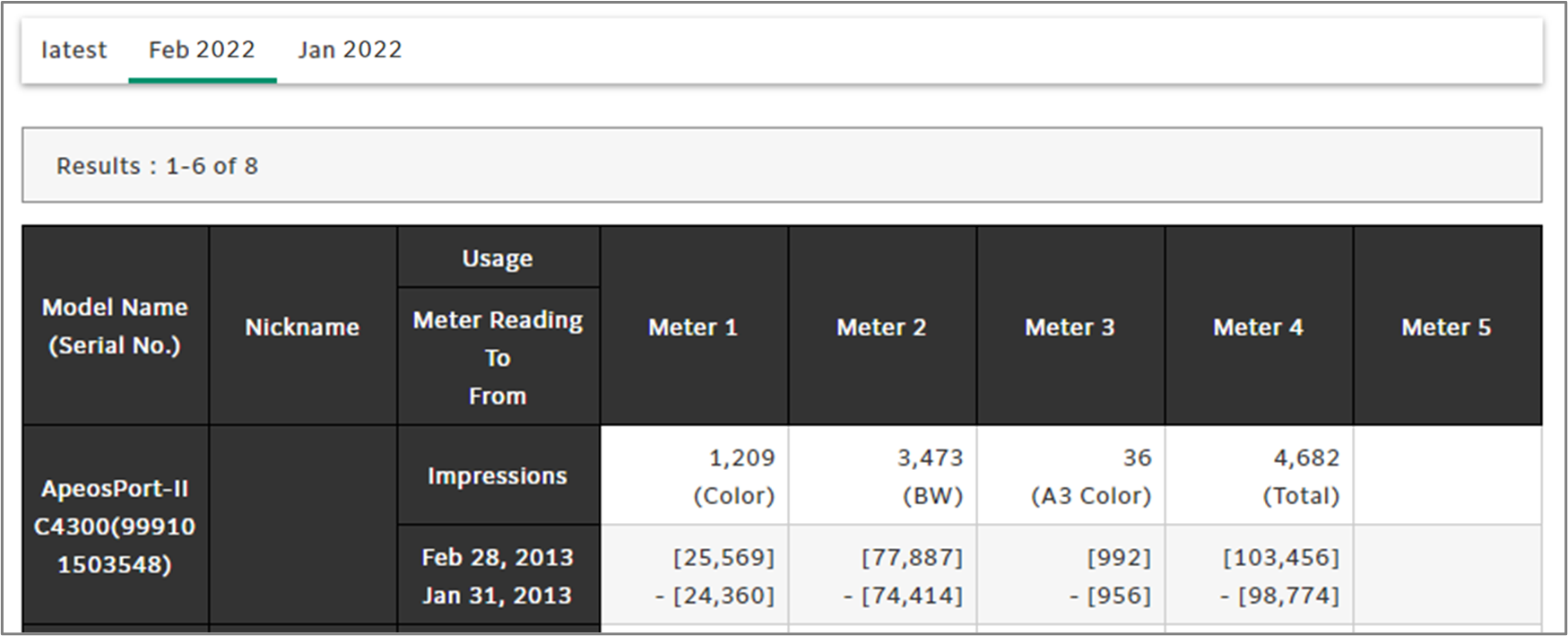 You can see the billing counter value for the last 2-months.