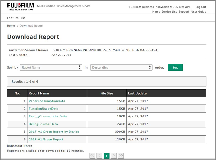 Monthly reports (billing, function usage, etc.) can be downloaded in PDF format.