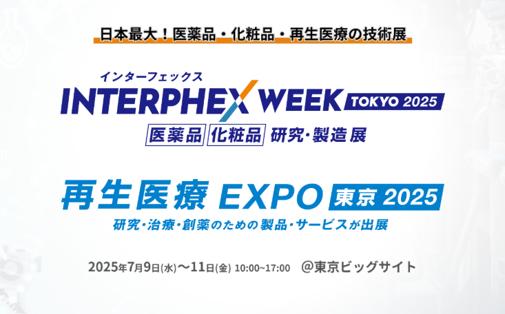 医薬品・化粧品・再生医療に関する研究・製造展「INTERFEX WEEK TOKYO2025(2025年7月9日~11日)」に出展いたします