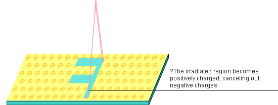A laser beam according to the image of the original document is irradiated onto the negatively-charged photoreceptor. The irradiated region of the photoreceptor generates positive charges, and negative charges were cancelled out.