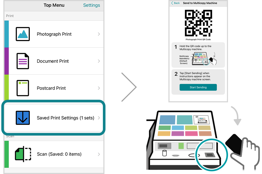After setting the printing options, you can now save the displayed code within the app. By configuring the print settings in advance, you can conveniently print by simply scanning the saved QR code at Seven-Eleven stores.