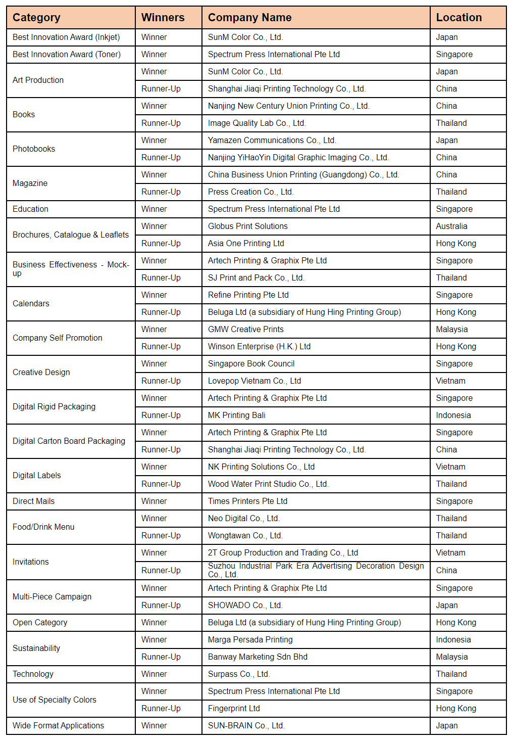 And for the first time in 16 years, there are two winners for the “Best Innovation Award” – Inkjet Technology and Toner Technology respectively, out of the 39 winners in 22 categories recognized for their creativity and print quality.